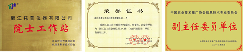 托普云農(nóng)成立近10年,已被認(rèn)定為“國家高新技術(shù)企業(yè)”、“國家863項(xiàng)目承擔(dān)合作單位”、“國家級星火計(jì)劃立項(xiàng)單位”、“浙江省重大科技項(xiàng)目承擔(dān)單位”、“科技部中小企業(yè)創(chuàng)新基金項(xiàng)目立項(xiàng)單位”、“浙江省科技型中小企業(yè)”、“杭州市級高新技術(shù)企業(yè)研發(fā)中心”、“《中國農(nóng)技推廣》年度理事會(huì)副理事長單位”、“中國儀器儀表協(xié)會(huì)農(nóng)業(yè)儀器應(yīng)用技術(shù)分會(huì)常務(wù)理事單位”、“中國通信工業(yè)協(xié)會(huì)物聯(lián)網(wǎng)行業(yè)分會(huì)常務(wù)理事單位”、 “中國智慧城市規(guī)劃建設(shè)推進(jìn)聯(lián)盟理事會(huì)理事單位”,2011年入選杭州市“雛鷹企業(yè)”一類企業(yè)、入圍年度“雛鷹杯”最具成長潛力企業(yè)20強(qiáng)”。