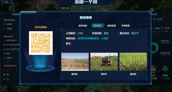 構(gòu)建“一田一碼”,對(duì)農(nóng)田地塊進(jìn)行賦碼,以“農(nóng)田碼”貫穿規(guī)劃選址、竣工驗(yàn)收、項(xiàng)目管護(hù)、農(nóng)田種植等全過(guò)程數(shù)據(jù),構(gòu)建“碼上監(jiān)管”"碼上服務(wù)”等業(yè)務(wù)場(chǎng)景,實(shí)現(xiàn)全周期串聯(lián),清晰掌提高標(biāo)準(zhǔn)農(nóng)田建設(shè)全空間、全要素、全過(guò)程信息,做到“事前事中可預(yù)警”“全程信息可追溯”。