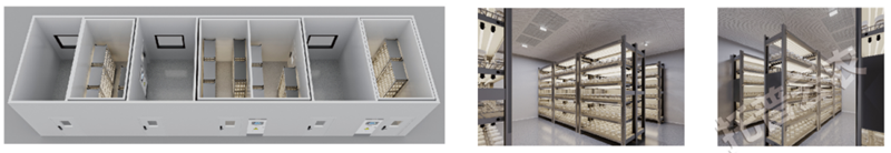 通過(guò)室內(nèi)環(huán)境模擬,研究林木生長(zhǎng)全周期變化,根據(jù)用戶栽培作物高度科學(xué)合理定制排布培養(yǎng)架或頂置光源 |