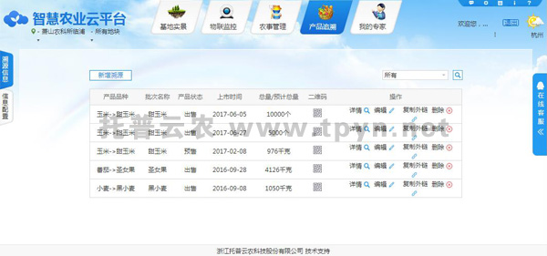 其智慧農業(yè)云平臺的追溯系統(tǒng)可生產過程全程監(jiān)控,并建立農產品質量安全溯源檔案,涵蓋基地信息、環(huán)境信息、生長過程、農事操作、農產品品質、檢測報告,農產品信息一鍵追溯。