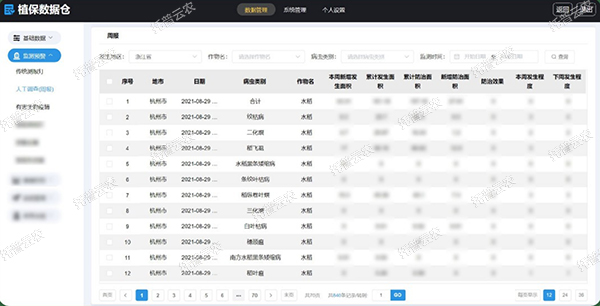 植保數(shù)據(jù)倉:采集全省農(nóng)業(yè)生產(chǎn)經(jīng)營主體、農(nóng)資生產(chǎn)經(jīng)營企業(yè)、植保工程(植保測報點、疫情監(jiān)測點)以及農(nóng)藥生產(chǎn)使用廢棄物等數(shù)據(jù)。實現(xiàn)一體化數(shù)據(jù)填報和省市縣三級業(yè)務貫通,解決人工填寫、人工統(tǒng)計、重復填報、層層上報的難題。