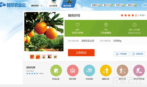 春秋農(nóng)莊在景徽菜籃子生鮮電商生態(tài)系統(tǒng)上,通過托普農(nóng)業(yè)物聯(lián)網(wǎng)系統(tǒng)建立臍橙質(zhì)量安全溯源檔案,向消費者全方位地展示臍橙的生長環(huán)境、農(nóng)事管理(用肥用藥情況)、采摘等環(huán)節(jié),為消費者提供真實可靠的產(chǎn)品信息,使之放心購買。