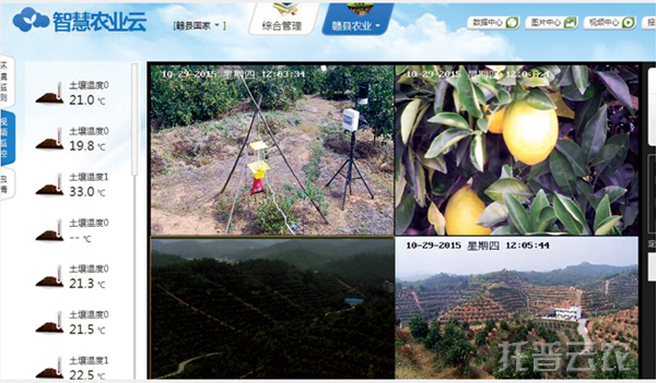 江西贛州的春秋農(nóng)莊是一家集臍橙種植與銷售、旅游觀光為一體的綠色生態(tài)企業(yè)。農(nóng)莊現(xiàn)種植臍橙1800余畝,在密集的橙樹林間,可以看到各式各樣的監(jiān)測儀器,它們是浙江托普云農(nóng)科技股份有限公司打造的農(nóng)業(yè)物聯(lián)網(wǎng)系統(tǒng),包括小型氣象站、高清攝像頭和蟲情測報燈等系統(tǒng)硬件。