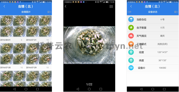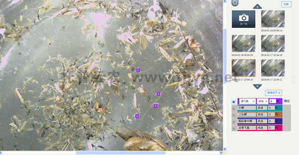 通過遠程可拍照式蟲情測報燈采集到的蟲情照片,可設(shè)置拍照時間定時上傳,也可隨時遠程拍照,即拍即看。高清照片清晰查看蟲情狀況,更有蟲情識別軟件自動識別稻飛虱、二化螟等水稻類蟲害,自動計數(shù)。