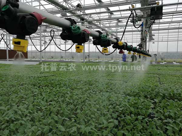 通過托普云農(nóng)物聯(lián)網(wǎng)控制的自走式噴灌機在工作中