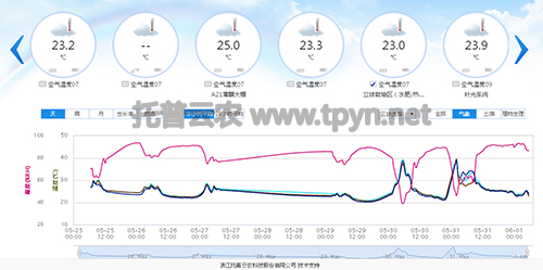 園區(qū)內(nèi)監(jiān)測到的土壤水分、土壤溫度,空氣溫濕度、二氧化碳、光照強度等數(shù)據(jù)直觀展現(xiàn),也可監(jiān)測植物本體參數(shù)莖稈微變化、果實膨大、葉片溫度等。可按天、周、月、生長季進行查看。
