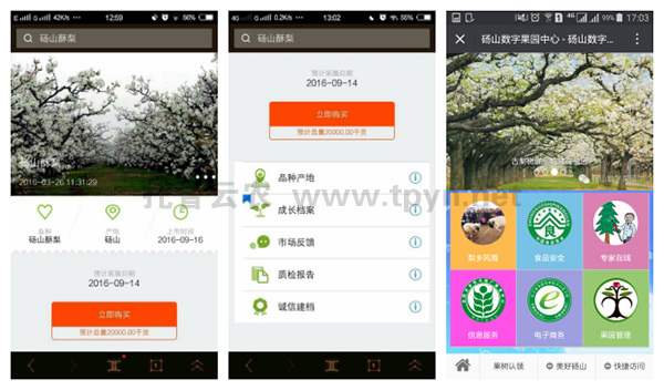 消費者可眾籌認(rèn)領(lǐng)果樹,通過手機查看酥梨的生長環(huán)境、農(nóng)事管理(用肥用藥情況)、采摘等環(huán)節(jié),不僅能吃到放心無公害的水果,還可以參與體驗到果園種植管理中去。