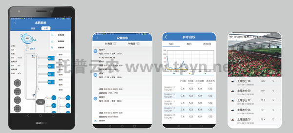 可遠(yuǎn)程查看溫室墑情、環(huán)境氣象采集數(shù)據(jù);遠(yuǎn)程查看溫室內(nèi)視頻信息;遠(yuǎn)程設(shè)置水肥、風(fēng)機(jī)、濕簾等設(shè)備運(yùn)行,實(shí)現(xiàn)遠(yuǎn)程智能化管理;可在手機(jī)上進(jìn)行農(nóng)事管理或在線專家咨詢。