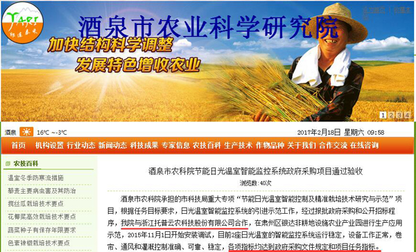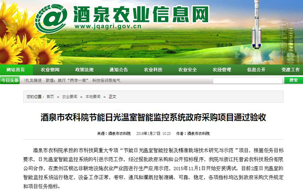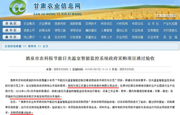 酒泉市農(nóng)科院節(jié)能日光溫室智能監(jiān)控系統(tǒng)政府采購項(xiàng)目通過驗(yàn)收