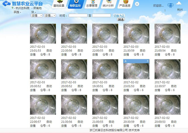 就茶園中常出現(xiàn)的蟲害問題,實(shí)現(xiàn)蟲情測(cè)報(bào),在茶園布控了蟲情測(cè)報(bào)燈。蟲情測(cè)報(bào)系統(tǒng)可遠(yuǎn)程查看病蟲害情況,并及時(shí)鏈接專家系統(tǒng)進(jìn)行預(yù)警決策。