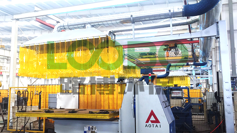 現(xiàn)場所需除塵區(qū)域共10余個(gè)操作工位,每個(gè)操作工位配置一個(gè)旋轉(zhuǎn)吸塵罩口,搭配集塵軟簾可針對煙氣粉塵的發(fā)生點(diǎn)更好的收集處理,除塵系統(tǒng)選用大風(fēng)量濾筒除塵器作為凈化系統(tǒng)的主設(shè)備,凈化效果更高。