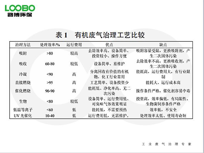 目前,我國(guó)針對(duì)揮發(fā)性有機(jī)廢氣的主流治理技術(shù)主要包括吸附法、吸收法、燃燒法、冷凝法、生物法、低溫等離子體法、光催化等,有機(jī)廢氣的處理技術(shù)對(duì)比見(jiàn)表3。結(jié)合印刷企業(yè)有機(jī)廢氣的特點(diǎn),單一的處理工藝很難達(dá)到有效治理廢氣的目標(biāo),一般工程設(shè)計(jì)單位會(huì)根據(jù)有機(jī)廢氣特征,在確保尾氣達(dá)標(biāo)的前提下,盡可能采用成熟可靠、處理效率高的處理工藝或者聯(lián)合處理工藝,達(dá)到治理目的。