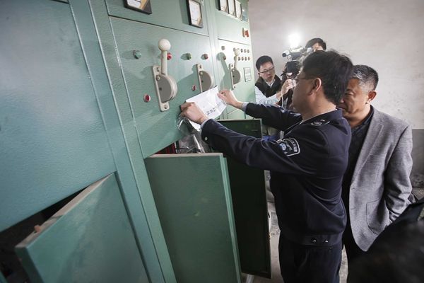 ??? 貼完封條,環(huán)保部門決定對企業(yè)拉閘斷電?!皩`法企業(yè)來說,斷了電,不關(guān)停也得關(guān)停。”供電公司找到企業(yè)的配電室,將車間對應(yīng)的電閘拉下,并由環(huán)保執(zhí)法人員貼上封條。