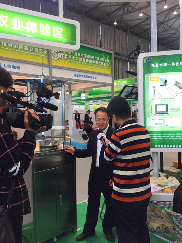 第十四屆中國國際農(nóng)產(chǎn)品交易會正在昆明舉行,央視七套《聚焦三農(nóng)》派出多路記者在現(xiàn)場采訪和體驗(yàn)。在科技展區(qū)浙江托普云農(nóng)科技股份有限公司(以下簡稱“托普云農(nóng)”)的“無線農(nóng)業(yè)氣象監(jiān)測站”吸引了記者的目光。