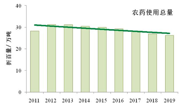 病蟲害是危害糧食安全的主要因素之一,目前針對病蟲害防治仍然以化學(xué)農(nóng)藥為主。但是近年來,由于農(nóng)業(yè)部啟動實施《化肥農(nóng)藥使用量零增長行動方案》,化學(xué)農(nóng)藥使用的總用量持續(xù)下降。2011—2019年農(nóng)藥使用總量(折百量)由31.3萬噸下降到26.3萬噸。2020年我國農(nóng)藥使用總量為26萬噸左右(折百量,估測值)。預(yù)計2021年農(nóng)藥使用量需求與2020年基本持平。