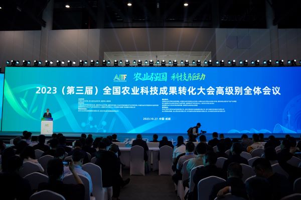 10月27日,2023(第三屆)全國農(nóng)業(yè)科技成果轉(zhuǎn)化大會在成都盛大開幕。同期,第九屆四川農(nóng)業(yè)博覽會·成都國際都市現(xiàn)代農(nóng)業(yè)博覽會同地舉行。本屆大會以“農(nóng)業(yè)強國 科技驅(qū)動”為主題,涵蓋1場高級別全體會議,1場近萬平米成果展會,13個專場活動,聚焦糧食安全與農(nóng)機裝備、鄉(xiāng)村振興與農(nóng)業(yè)產(chǎn)業(yè)、綠色農(nóng)業(yè)與食品產(chǎn)業(yè)、農(nóng)業(yè)科技成果轉(zhuǎn)化與知識產(chǎn)權(quán)等領(lǐng)域,圍繞科技協(xié)同創(chuàng)新、成果轉(zhuǎn)化先進經(jīng)驗與模式等研討交流、分享經(jīng)驗、共謀思路。