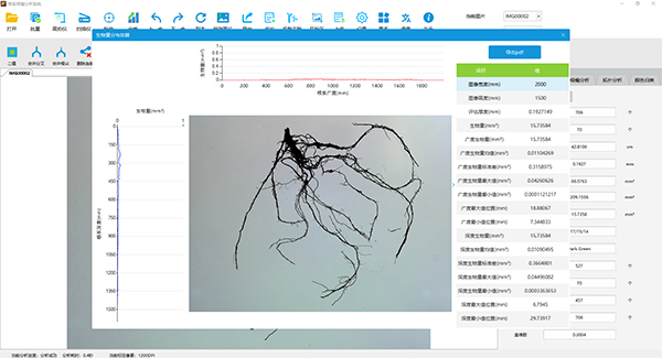 一鍵分析多項(xiàng)參數(shù):一鍵操作,即可獲取根系長度、直徑、投影面積、表面積、體積、根尖數(shù)、分叉數(shù)以及估算根系廣度和深度維度上的生物量。