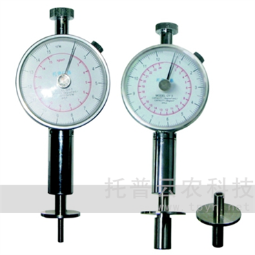 2、測(cè)量:右手握硬度計(jì),使硬度計(jì)垂直于被測(cè)水果表面,在均勻力的作用下將壓頭壓入水果內(nèi),此時(shí)指針開(kāi)始旋轉(zhuǎn),當(dāng)壓到壓頭刻線時(shí)(壓入10毫米)停止,此時(shí)指針指的刻度值即為所測(cè)的硬度值。