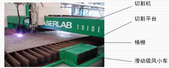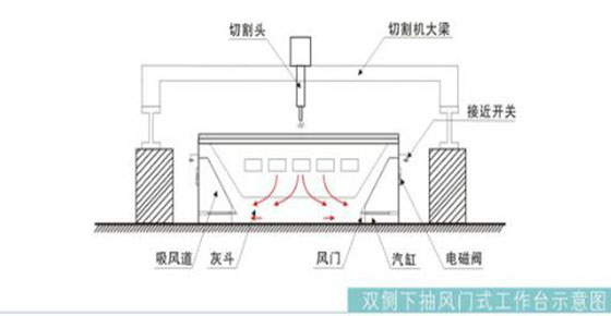 切割平臺(tái)的抽風(fēng)系統(tǒng)有效集中在切割機(jī)所在區(qū)域(寬度為切割平臺(tái)寬度,長度方向約1m),該區(qū)域隨切割頭移動(dòng)而移動(dòng),有效節(jié)省了抽風(fēng)量。