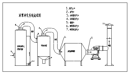噴漆廢氣產(chǎn)生于工件涂裝的噴漆工作臺,高壓空氣噴射出的油漆大部分留在工件上,其它的隨著廢氣帶出,形成漆霧粉塵。這些粉塵含量不高,粒徑較小,絕大部分在10μm以下,塔體外部的漆霧在風(fēng)機(jī)的吸力下進(jìn)入本無填料噴霧式漆霧凈化塔,氣體經(jīng)塔體內(nèi)的氣體分布器分布后向塔內(nèi)上方行走,在行走的過程中,遇到多級噴淋洗滌的凈化液,漆霧與液體進(jìn)行完全飽和接觸,顆粒狀塵霧被水帶走進(jìn)入貯液槽,并由水泵抽走,余下的干凈尾氣通過網(wǎng)狀過濾器過濾后,再進(jìn)入下一組多級噴淋洗滌工序,經(jīng)再次多級噴淋洗滌處理,和網(wǎng)狀超細(xì)過濾器過濾后余下的空氣排出。
