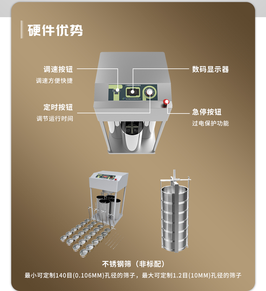 土壤團(tuán)聚體分析儀低噪音,可調(diào)速;帶有定時(shí)設(shè)置功能,運(yùn)行時(shí)間數(shù)碼管顯示,無級調(diào)速功能;同時(shí)帶有應(yīng)急暫停開關(guān),方便試驗(yàn)中出現(xiàn)異常及時(shí)斷電,停止工作。具有漏電保護(hù)功能。