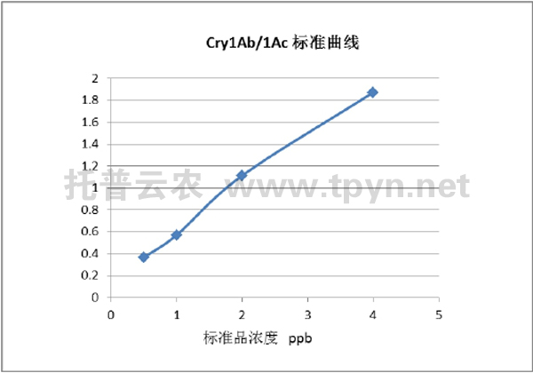 本品系用特異性抗 Cry1Ab/1Ac 單抗包被的微孔板和酶標(biāo)記抗 Cry1Ab/1Ac 單抗,雙抗體夾心法檢測(cè) Cry1Ab/1Ac 基因表達(dá)產(chǎn)物,可以高靈敏度和特異性的檢測(cè)轉(zhuǎn)基因植物中的 Bt-Cry1Ab/1Ac 蛋白。