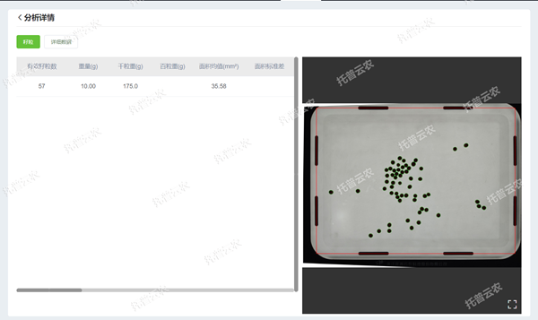 智能考種分析系統(tǒng)可以測量水稻、小麥、玉米、油菜、豆類、花生、芝麻、高粱等脫粒后的各種作物種子,快速獲取種子的數(shù)量、千粒重與平均粒型(包括長、寬、長寬比、周長、面積)等信息。