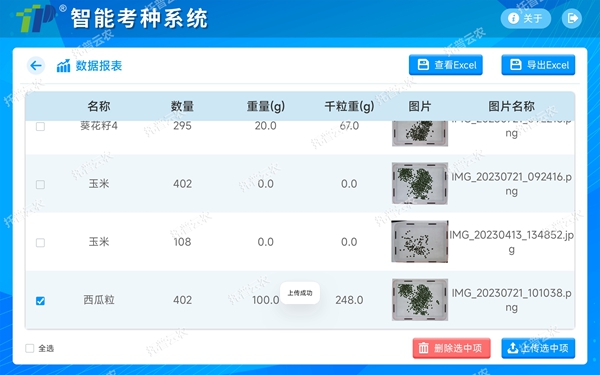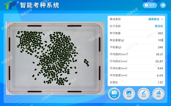 TPKZ-2智能考種分析系統(tǒng)可以測量水稻、小麥、玉米、油菜、豆類、花生、芝麻、高粱等脫粒后的各種作物種子,快速獲取種子的數(shù)量、千粒重與平均粒型(包括長、寬、長寬比、周長、面積)等信息。主要應(yīng)用于育種過程中,對育種材料千粒重及粒型參數(shù)的快速、準(zhǔn)確提取,提高育種效率,為育種材料的篩選提供依據(jù)。